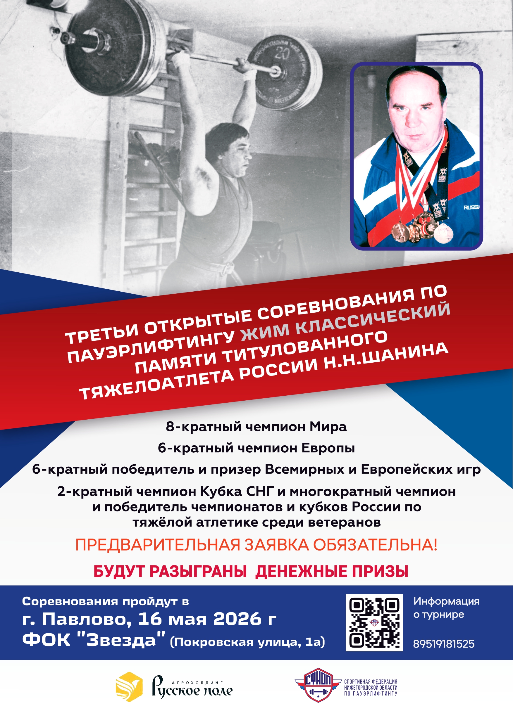 Третьи открытые соревнования по пауэрлифтингу (жим классический) памяти титулованного тяжелоатлета России Н.Н. Шанина